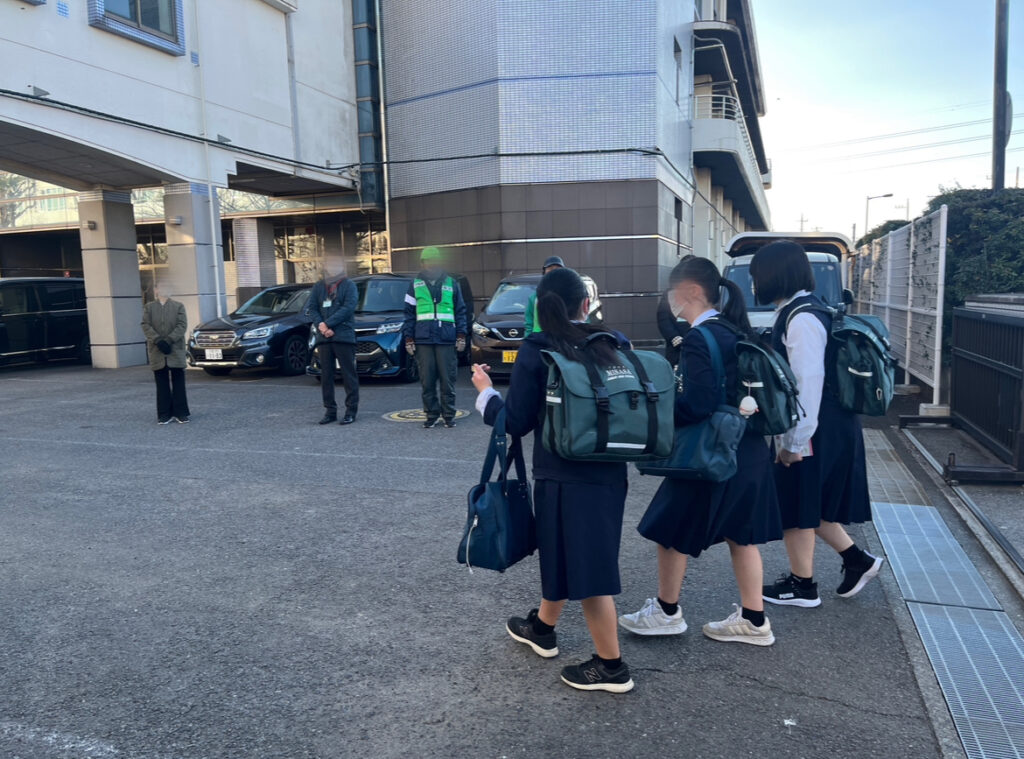 冬の澄んだ空気の中、登校してくる生徒たち一人ひとりに「おはようございます!」と声をかけると、元気に返してくれる姿がとても印象的でした。